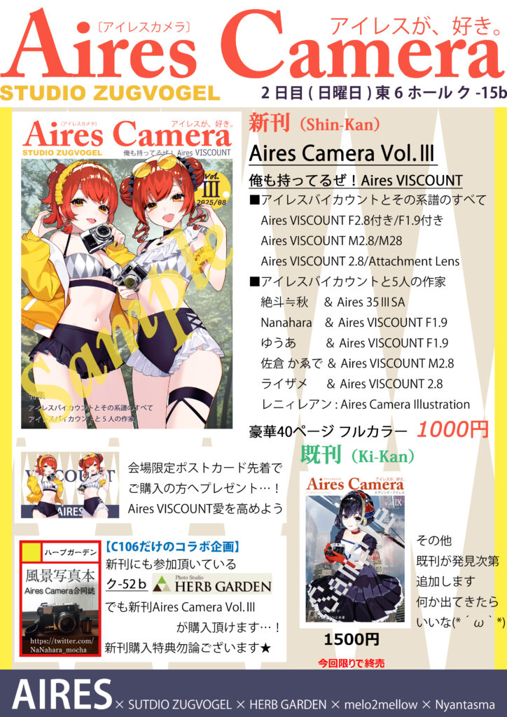 新刊にもご参加頂いている ク-25b HERB GARDENさん(@NaNahara_mocha)でも今回のAires Camera Vol.Ⅲを購入いただく事が可能です!